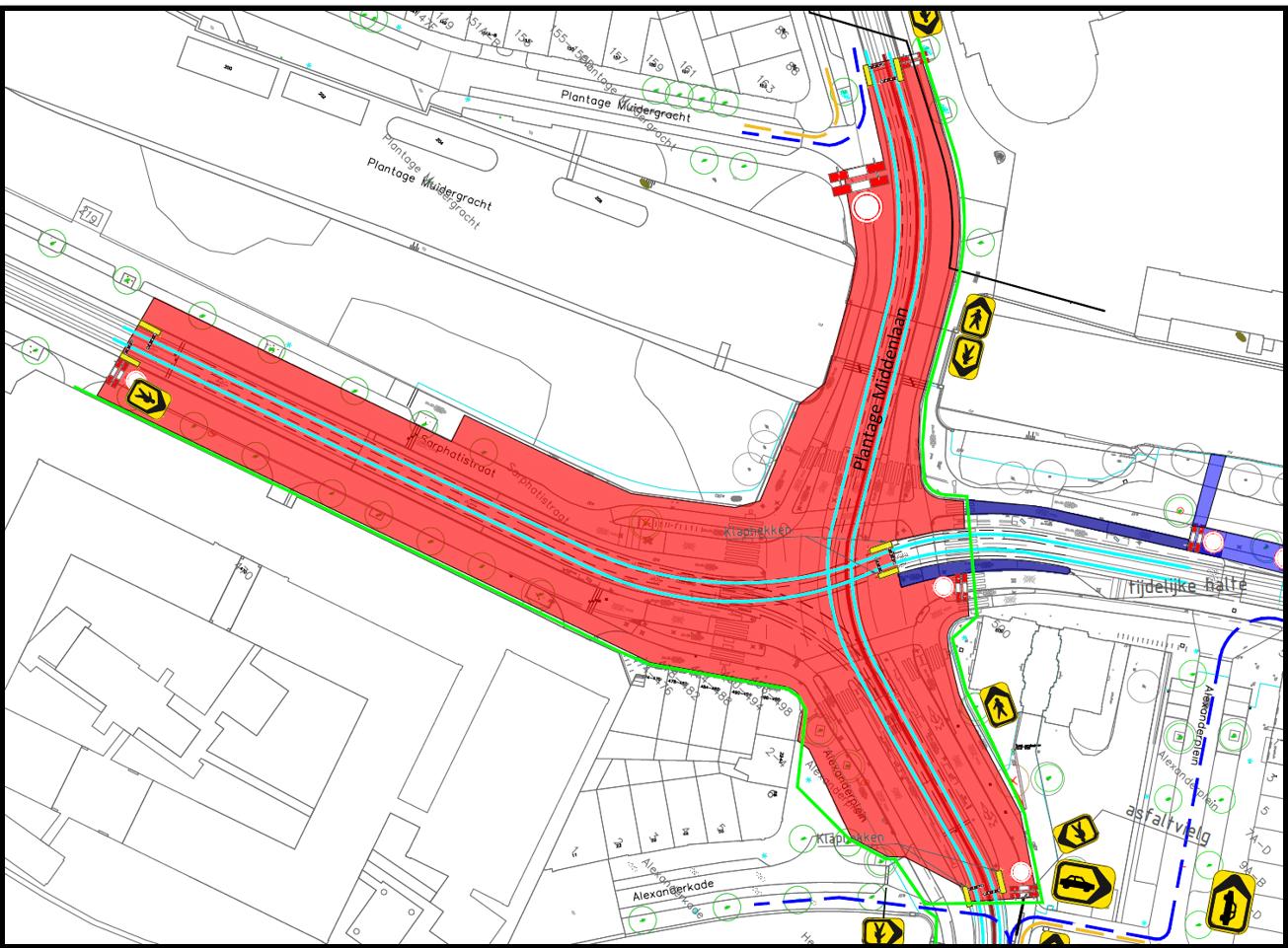 Door het plaatsen van verkeersbord conform model C1 van bijlage 1 van het RVV1990 in te stellen: een geslotenverklaring in beide richtingen voor voertuigen, ruiters en geleiders van rij- of trekdieren of vee op het deel van de Plantage Middenlaan tussen de Plantage Muidergracht en het Alexanderplein.