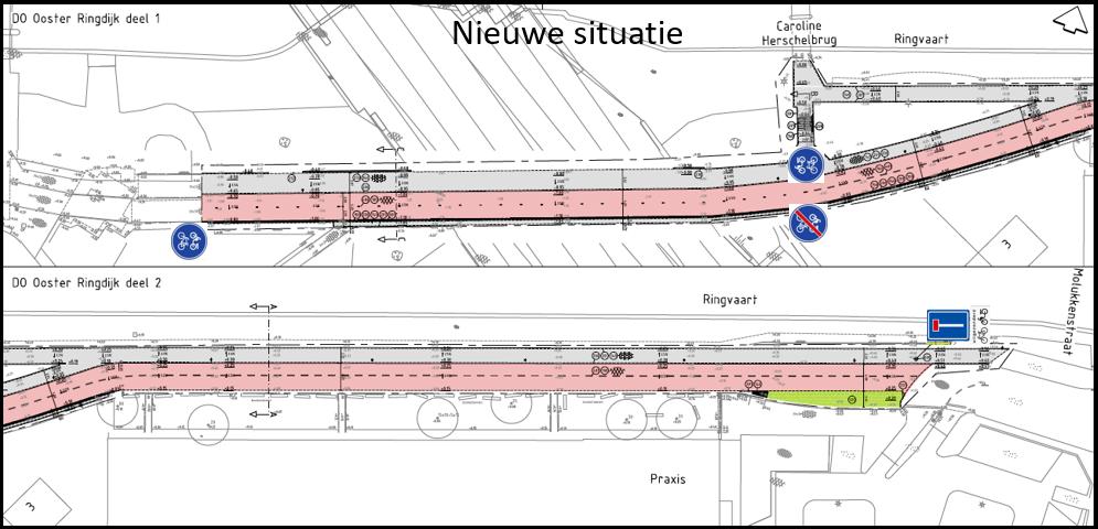 op het deel van de Ooster Ringdijk tussen de Molukkenstraat en de Polderweg groot onderhoud gaat plaatsvinden waarbij de bestaande rijloper waarop een verplicht (brom)fietspad van kracht is verbreed wordt van 3,5 naar 4 meter met toepassing van een vergevingsgezinde band en het bestaande trottoir wordt opgeknapt;