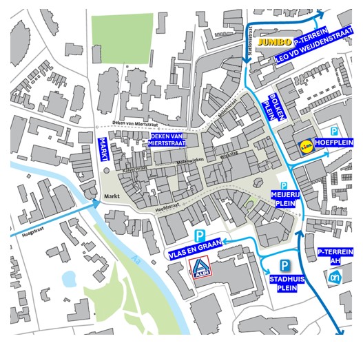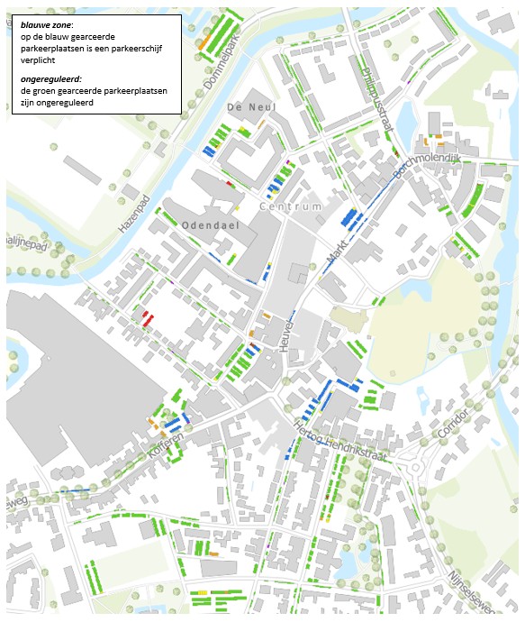 Uit de parkeermeting blijkt dat een aanzienlijk deel van de parkeerders in de blauwe zone geen parkeerschijf of ontheffing gebruiken (tot circa 25%). Mede hierdoor is er op de populaire parkeerlocaties zoals Meijerijplein, Deken van Miertstraat en de Markt sprake van een relatief hoge parkeerdruk en is er tijdens piekmomenten weinig tot geen restcapaciteit beschikbaar.