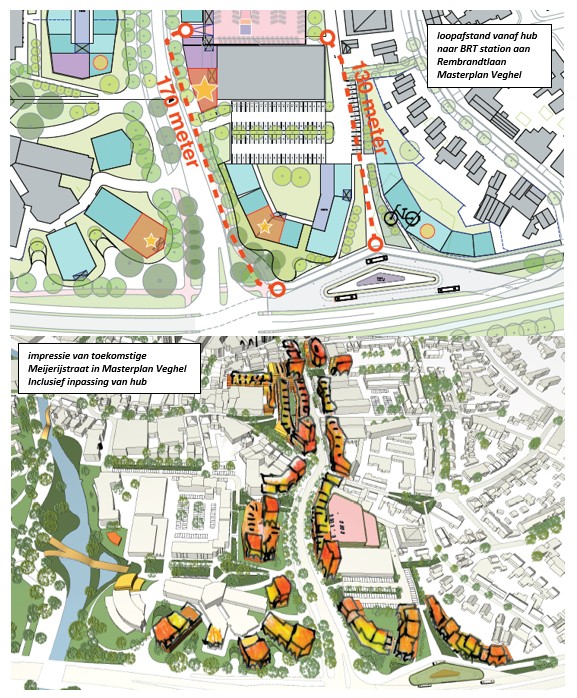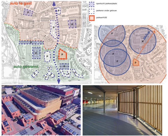 Voor parkeren wordt nadrukkelijk gekeken naar de ruimtelijke inpassing van een meerlaagse gebouwde parkeervoorziening (hub) die een functie kan vervullen voor de opvang van zowel (een deel van de) parkeerbehoefte van nieuwe woningen alsmede ter compensatie van op te heffen parkeerplaatsen in de openbare ruimte (o.a. de parkeerlocaties Meijerijplein, Bolkenplein en Stadhuisplein).