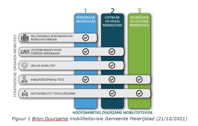 Meierijstad zet in op een gezonde leefomgeving. In lijn met de ambitie ‘duurzaam en gezond’ wordt ingezet op een verschuiving van autogebruik naar het gebruik van duurzame vervoerswijzen. De actieve, gezonde en schone vormen van vervoer, zoals lopen, fietsen en het openbaar vervoer krijgen meer ruimte en prioriteit.