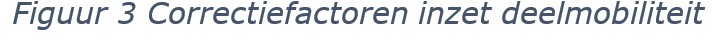 De correctiefactor bedraagt een maximale reductie van 10% op de autoparkeereis. Deze is alleen van toepassing op de autoparkeereis i.r.t. bewonersparkeren. Na toepassing van de correctiefactor inzet deelmobiliteit bedraagt de autoparkeereis: