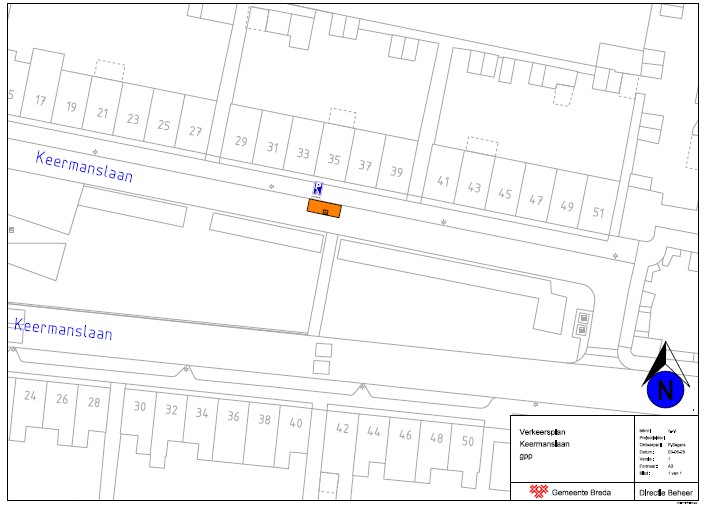 Een gehandicaptenparkeerplaats op kenteken aan te wijzen in de Keermanslaan ter hoogte van huisnummer 35 te Breda. Een en ander zoals weergegeven op de bijgevoegde tekening ‘Verkeersplan Keermanslaan gpp’.