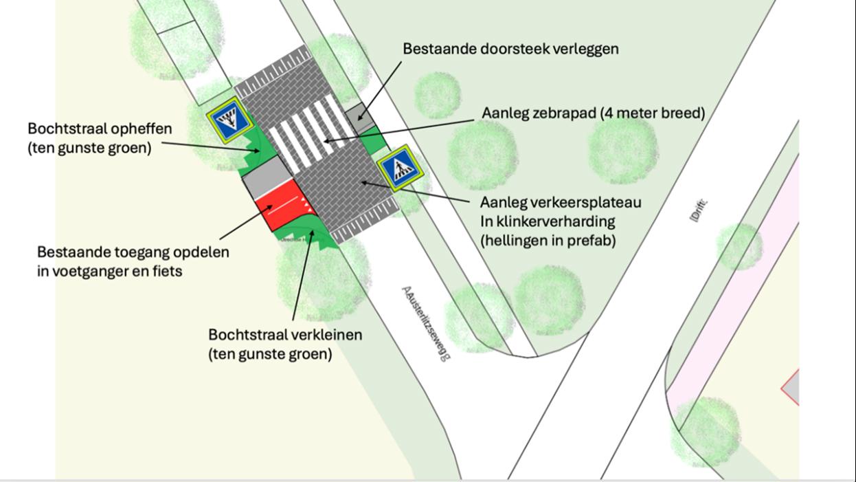 Dit tegen te gaan is met het aanbrengen van een voetgangersoversteekplaats;
