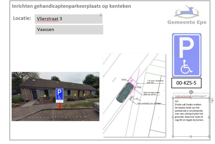 dat in het belang van de mobiliteit van gehandicapte het noodzakelijk c.q. gewenst wordt geacht bij het volgende pand een gehandicaptenparkeerplaats op kenteken aan te leggen: Vlierstraat 3 te Vaassen;