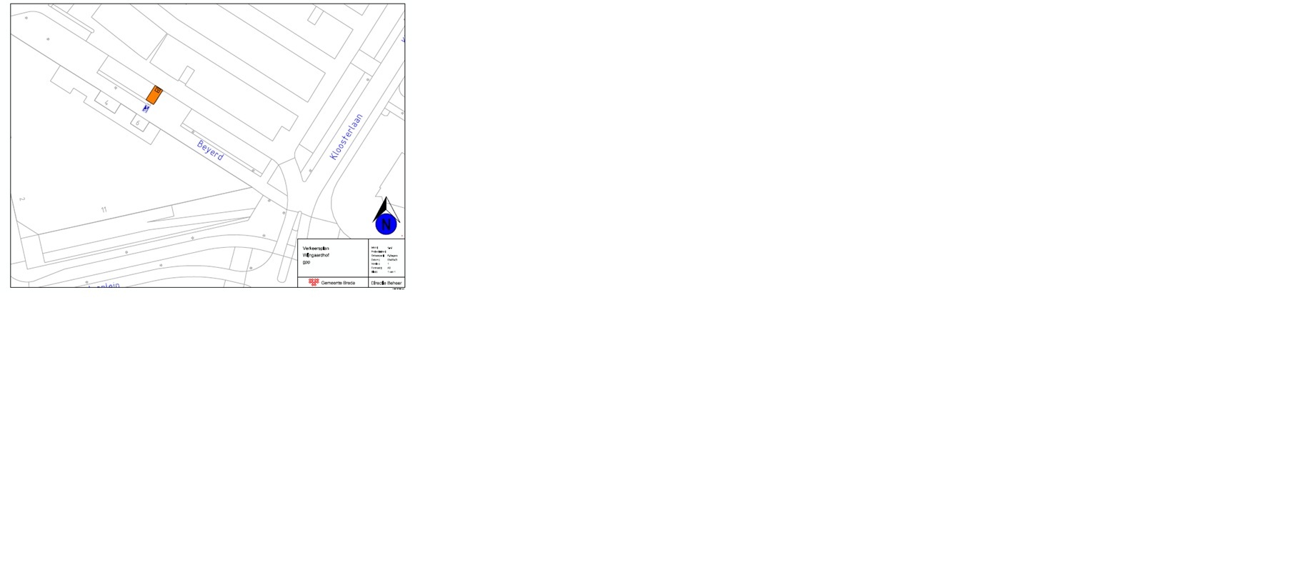 Een gehandicaptenparkeerplaats op kenteken aan te wijzen op het parkeerterrein Beyerd-Vlaszak, ter hoogte van Beyerd 6 te Breda. Een en ander zoals weergegeven op de bijgevoegde tekening ‘Verkeersplan Wijngaardhof gpp’.
