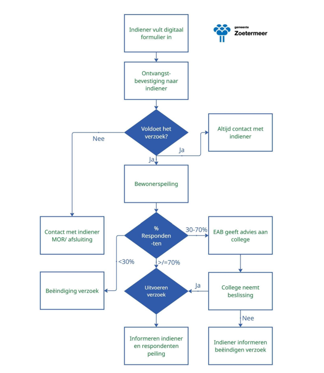 Op de gemeentelijke website wordt uitgelegd wat het doel is van het indienen van een verzoek en hoe de procedure verloopt.