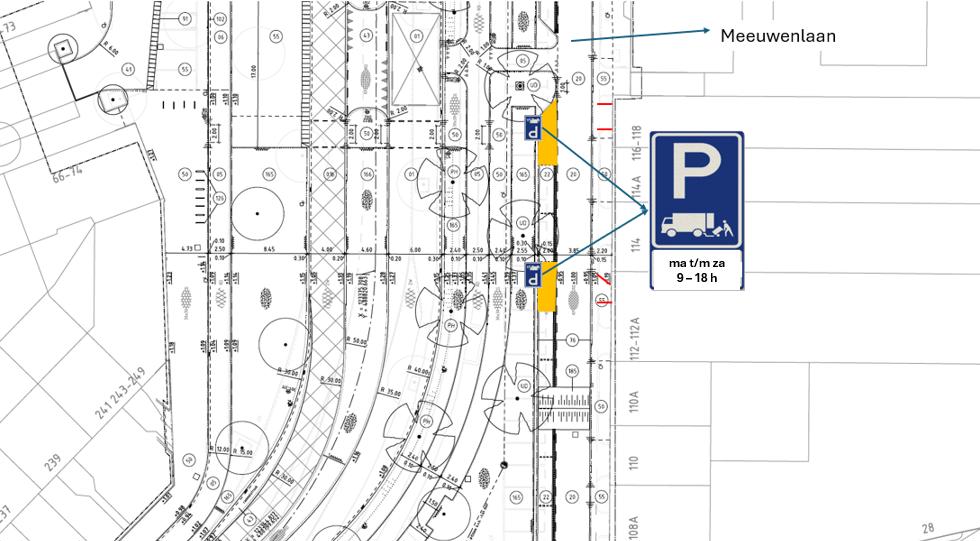 Door het plaatsen van verkeersborden conform model E7 uit bijlage 1 van het RVV 1990, voorzien van een onderbord met daarop de tekst ‘ma t/m za 9 – 18 h’, in te stellen: twee gelegenheden voor het onmiddellijk laden- en lossen van goederen op de Meeuwenlaan, direct tegenover perceelnummers 112 en 118, in de nieuw aan te leggen parkeergelegenheden (parkeervaknummers nog niet bekend), gedurende de venstertijden van maandag tot en met zaterdag tussen 9.00 en 18.00 uur.