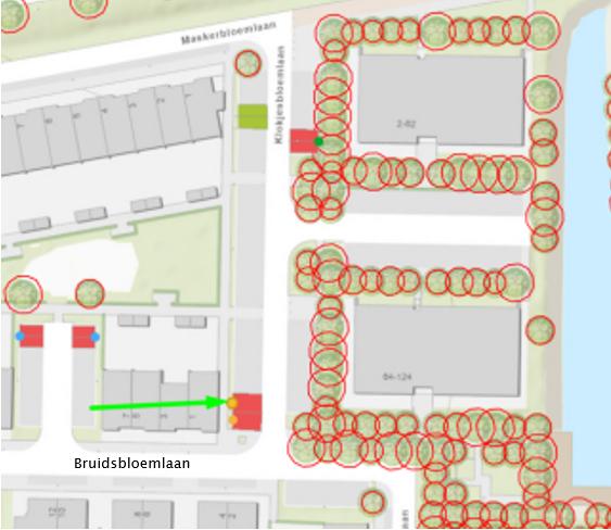 Klokjesbloemlaan (ter hoogte van de zijgevel van perceel Bruidsbloemlaan 1; wegvak tussen Maskerbloemlaan en Bruidsbloemlaan)