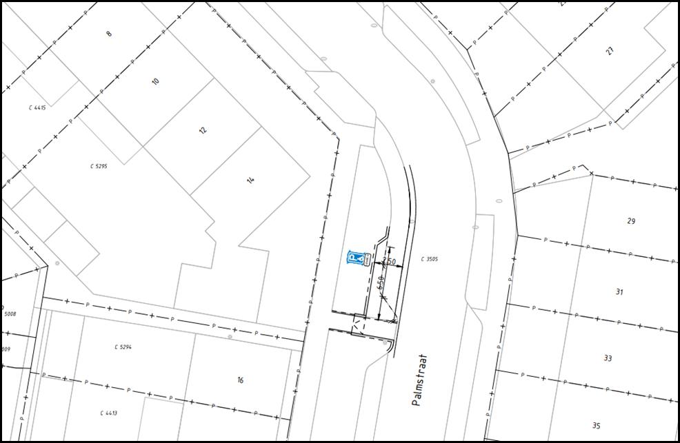 het voertuig waarmee het zieke kind vervoerd wordt niet in zijn geheel op de parkeerstroken van de Palmstraat past;