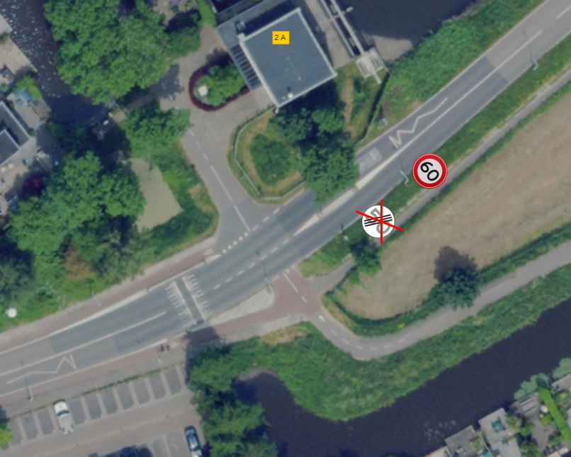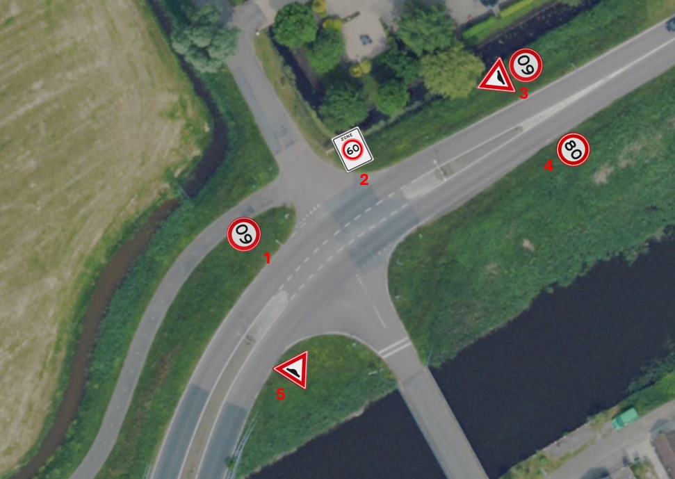 Het plaatsen van de borden A01-60 (maximum snelheid 60km/u) op de volgende locaties: