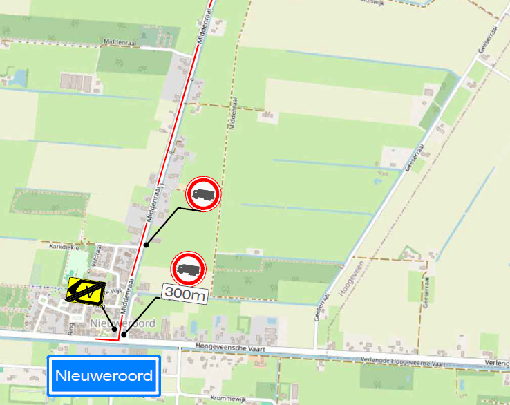 Tot het tijdelijk instellen van een inrijverbod voor vrachtverkeer op de Middenraai te Nieuweroord, door plaatsing van het volgende verkeersbord: