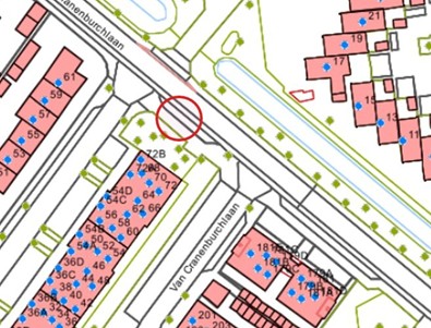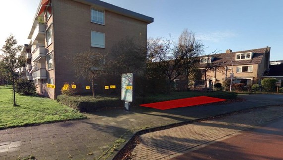 Omschrijving: Zie rode cirkel op de plattegrond en het rode vlak op de situatiefoto. Plaatsing twee ondergrondse restafvalcontainers en één ondergrondse papiercontainer t.h.v. het trottoir. Tijdens een eerdere zienswijze procedure stond ook glas ingetekend. Vanwege een ingediende zienswijze en voldoende glasvoorzieningen in de omgeving is hier vanaf gezien.