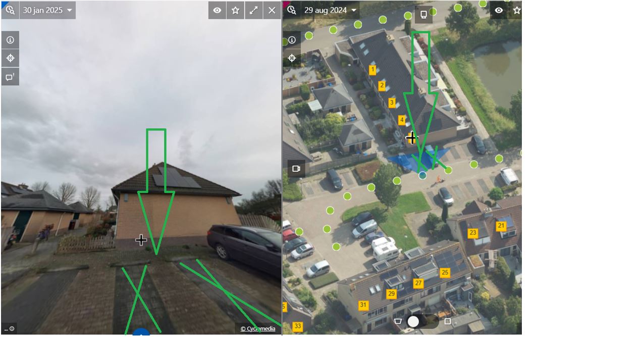 De aangewezen parkeerplaatsen zijn weergegeven op onderstaande afbeelding.