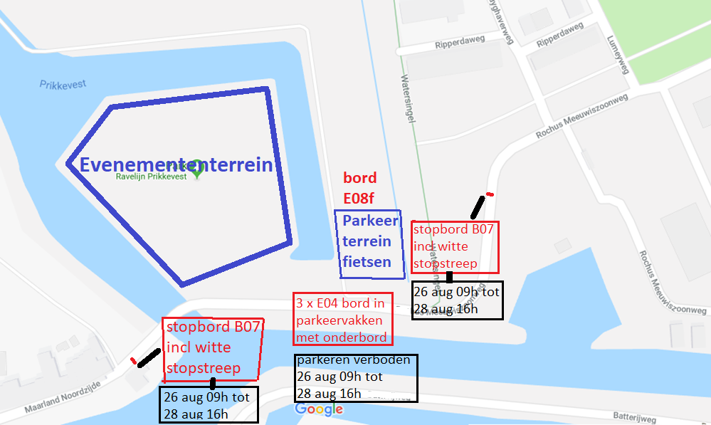 Gedurende het evenement een stopbord B07 in te stellen op het Maarland Noordzijde en één op de Rochus Meeuwiszoonweg te Brielle.Gedurende het evenement een parkeerplaats aan te wijzen bestemd voor fietsen op de Maarland Noordzijde te Brielle;