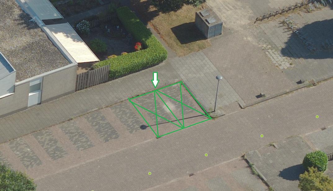 De parkeerplaatsen zijn alleen bedoeld voor het opladen van elektrische auto’s. Daarom plaatsen we het verkeersbord E08c (dit staat in bijlage I van het RVV 1990). We plaatsen ook het verkeersbord OB504 daaronder. Dit is een bord met twee pijlen die wijzen naar de parkeerplaatsen.