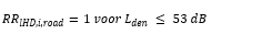 ** Alleen voor de geluidbron wegverkeer is in de regeling een werkwijze beschreven voor de berekening van het relatieve risico (RR) van ischemische hartziekten (IHD). Terug naar link van noot.