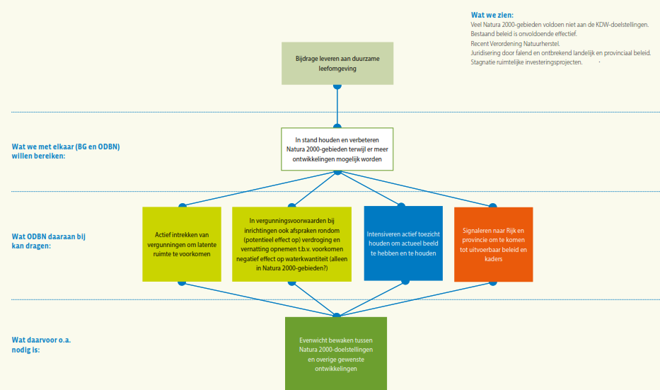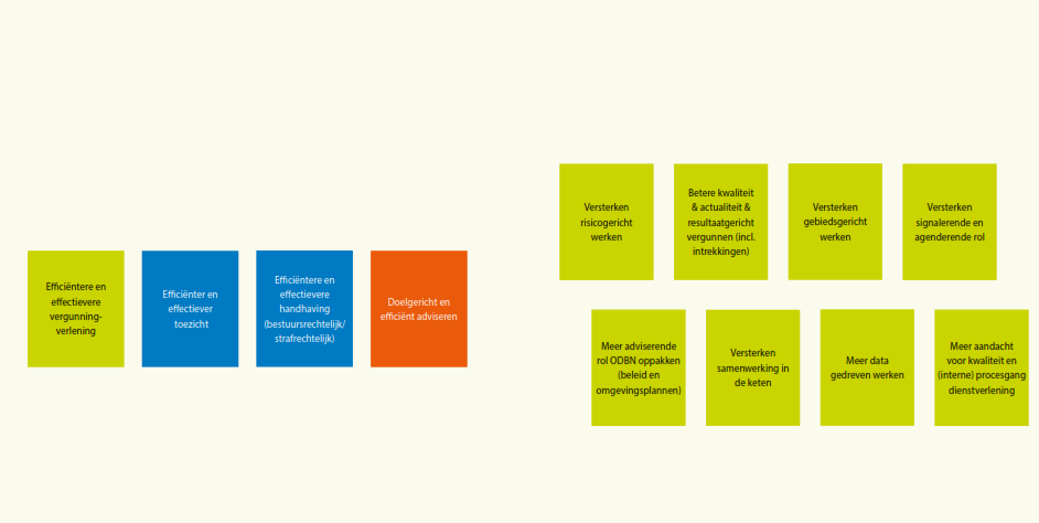 Op de volgende pagina’s zijn op basis van de ontwikkelingen als geschetst in de omgevingsanalyse en de verwachte effecten op de taakuitvoering door ODBN, per expertisegebied doelstellingen geformuleerd. De werkwijze is hiervoor beschreven. De benodigde inspanningen om deze doelstellingen de komende jaren te realiseren worden door ODBN in het werk- en het ontwikkelprogramma jaarlijks verder uitgewerkt.
