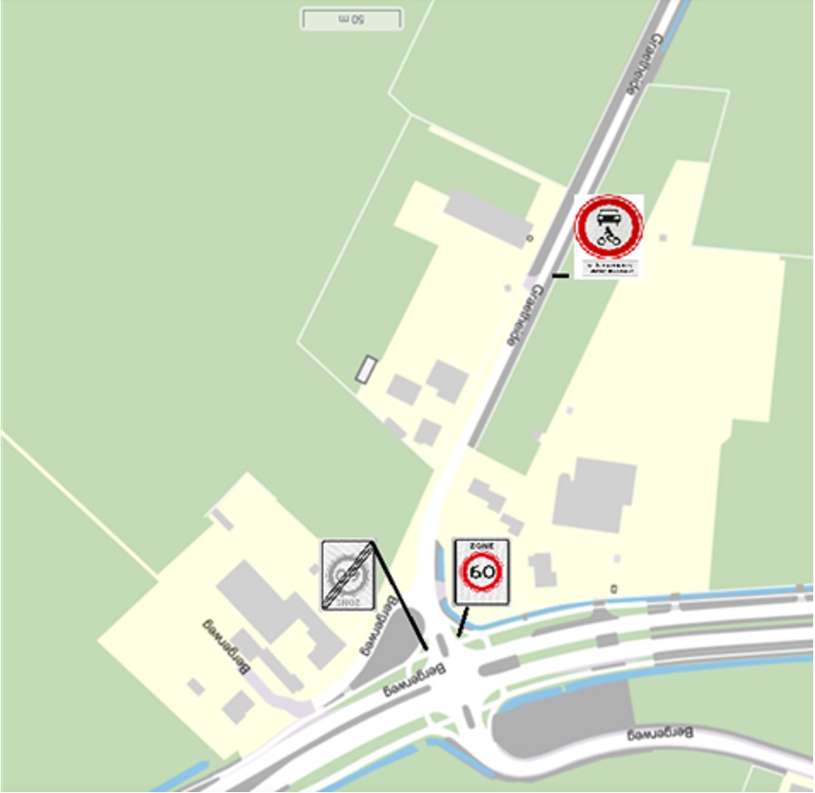 het plaatsen van verkeersborden ‘Maximumsnelheid zone’ (bord A01-60zb), ‘Einde maximumsnelheid zone’ (bord A02-60ze) en ‘Gesloten voor alle motorvoertuigen’ (bord C12) in combinatie met onderbord ‘Uitgezonderd landbouwverkeer’, nabij de kruising met Graetheide en de Bergerweg en Graetheide huisnummer 1B te Sittard.