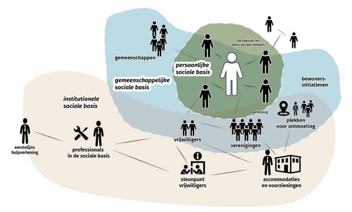 Een sterke sociale basis helpt inwoners hun problemen zelf of met hun sociale netwerk op te lossen. Dit versterkt de cohesie, de onderlinge zorg en zelfstandigheid, waardoor minder professionele hulp nodig is. De sociale basis betekent: vrij toegankelijke formele en informele activiteiten en voorzieningen gericht op het elkaar ontmoeten en ondersteunen, ontplooien en ontspannen die zorgen dat mensen kunnen samenleven en meedoen. Het versterken van de sociale basis gaat over het omzien naar elkaar in de wijken, buurten en dorpen. Maar ook over het autonoom kunnen leiden van het leven met eigen regie en een netwerk vanuit die basis. (Definitie Gezond en Actief Leven Akkoord).