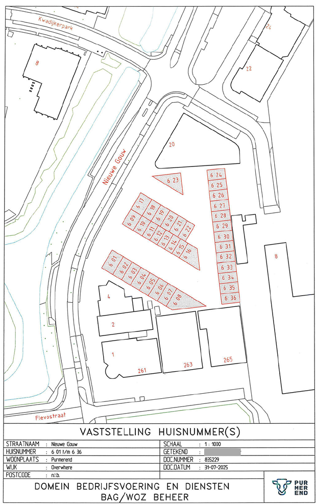 Kennisgeving huisnummerbesluit Nieuwe Gouw 6 (toevoegingen 01 t/m 36)