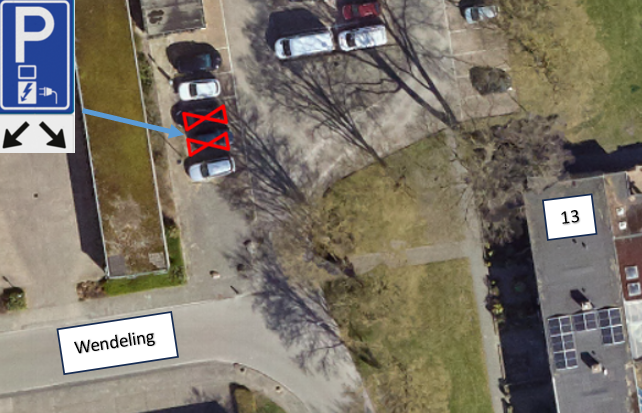 Beide parkeerplaatsen bij de laadpaal worden voor het laden gereserveerd. Er mogen dan geen auto’s worden geparkeerd die worden aangedreven door een brandstofmotor. Dit maximaliseert het gebruik van de locatie en stimuleert om ook elektrisch te rijden.