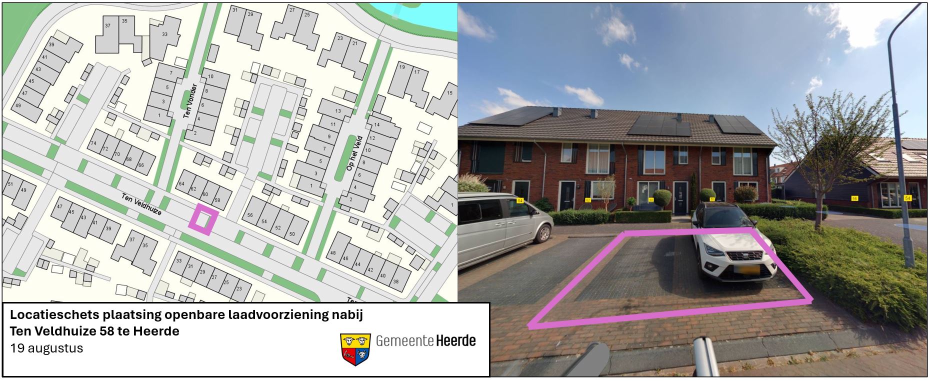 Locatieschets plaatsing openbare laadvoorziening nabij Ten Veldhuize 58 te Heerde:
