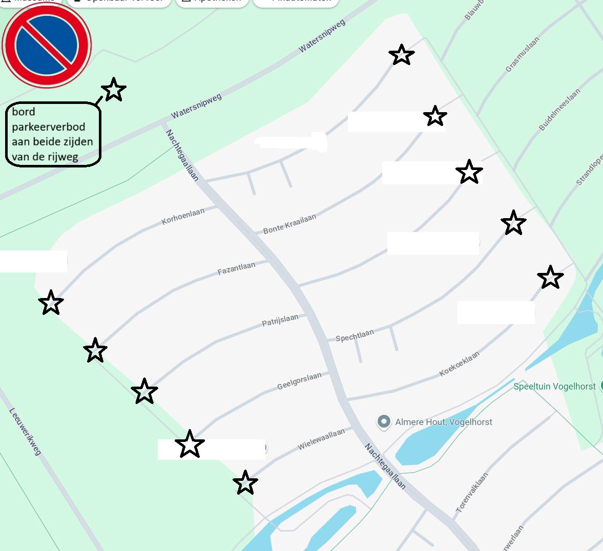 Op grond van vorenstaande overwegingen besluiten burgemeester en wethouder tot het instellen van een parkeerverbod ter plaatse van de keerlussen in Vogelhorst I te Almere Hout door: