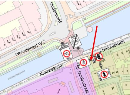 Nieuwekade ter hoogte van de St. Jacobsstraat; wegvak: tussen de Zandbrug en de St. Jacobsstraat)