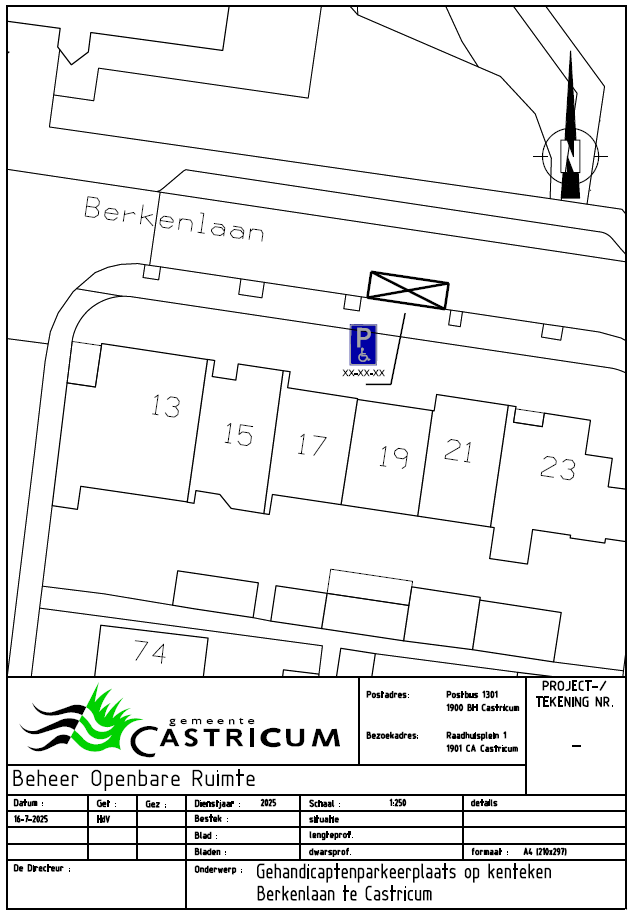De aanvrager wonende in de Berkenlaan te Castricum heeft verzocht om een gehandicaptenparkeerplaats te reserveren in de directe nabijheid van de woning.