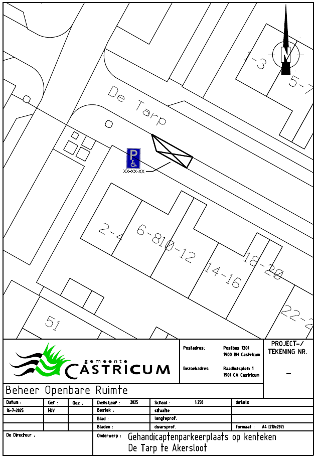 De aanvrager wonende in De Tarp te Akersloot heeft verzocht om een gehandicaptenparkeerplaats te reserveren in de directe nabijheid van de woning.