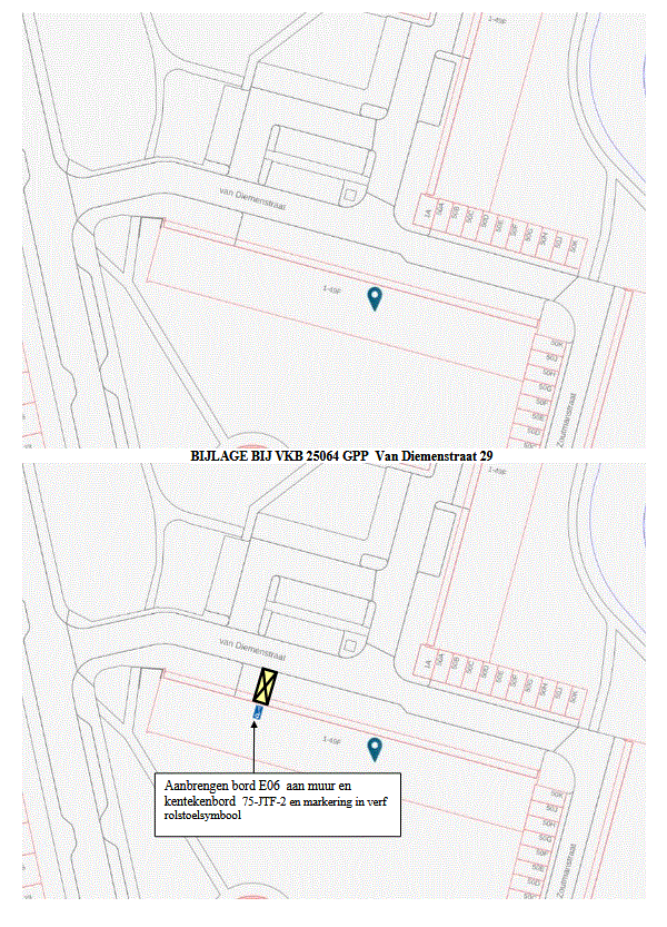 gehandicaptenparkeerplaats aan te brengen, door het plaatsen van het bord model E06 en het onderbord OB309 (kenteken) van bijlage 1 van het RVV 1990, ter hoogte van het volgende adres:
