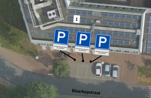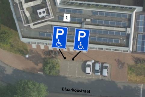 na het vaststellen van 2 gehandicaptenparkeerplaatsen op die plekken uitsluitend voertuigen geparkeerd mogen worden als deze duidelijk zichtbaar een gehandicaptenparkeerkaart in het voertuig hebben;
