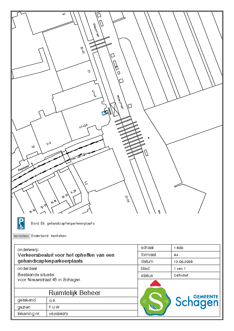Gemeente Schagen- Verkeersbesluit opheffen gehandicaptenparkeerplaats nabij Nieuwstraat 41-45a, Schagen .