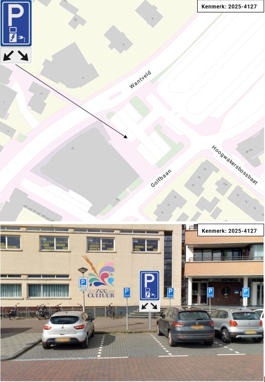 - Hoogwakersbosstraat in Noordwijk op de haakse parkeervakken aan de westzijde van het parkeerterrein nabij Wantveld nummer 4;