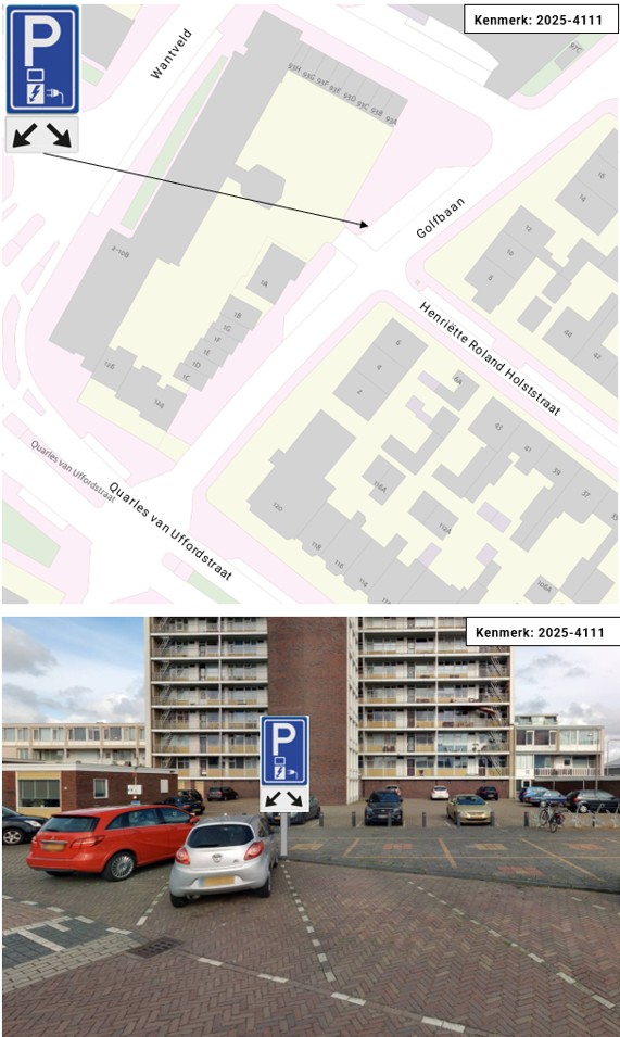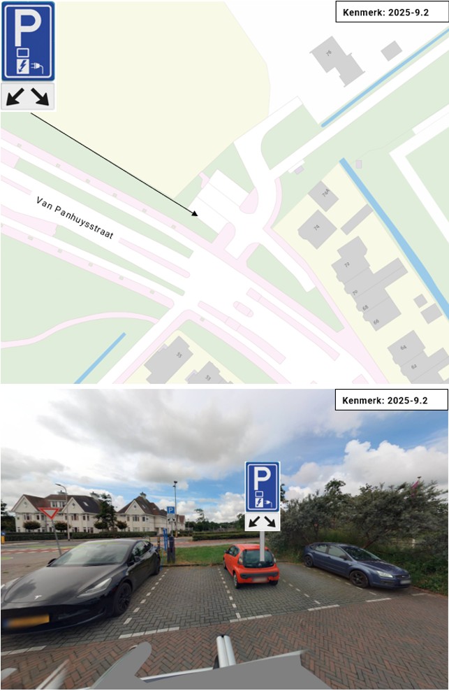 - Van Panhuysstraat in Noordwijk op de haakse parkeervakken in de parkeerkoffer nabij nummer 74 (3de en 4e vak naast de eerste laadpaal);