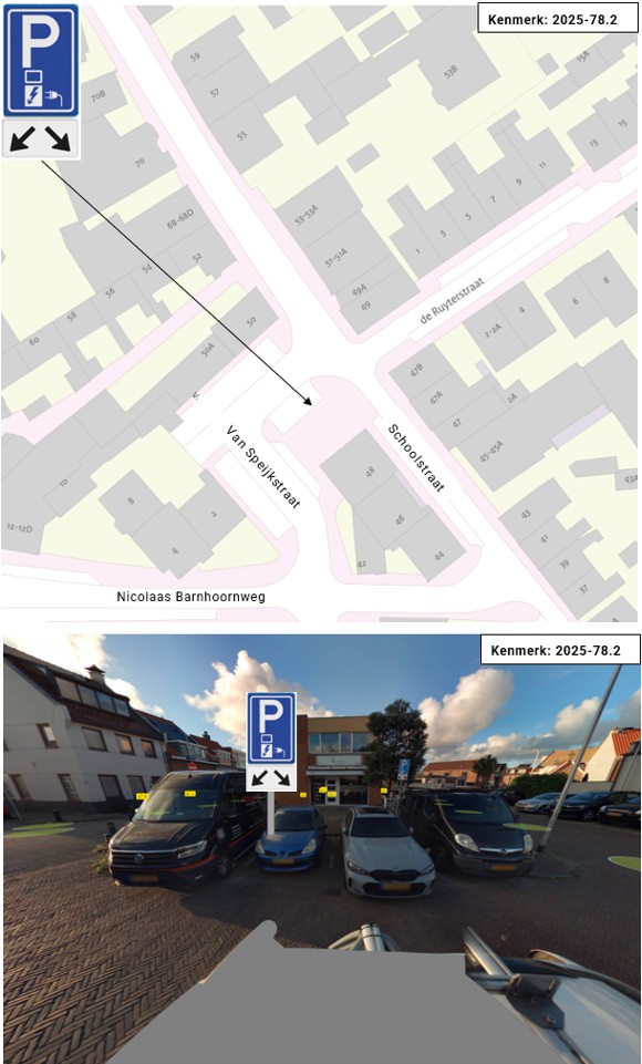 - Van Speijkstraat in Noordwijk op de haakse parkeervakken nabij nummer 49 (3de en 4e vak naast de eerste laadpaal);