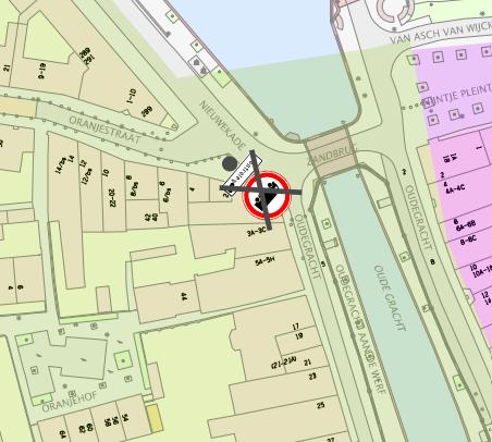 Nieuwekade (ter hoogte van het pand Oranjestraat huisnummer 1; wegvak: tussen het pand Nieuwekade huisnummer 299 en het pand Oudegracht huisnummer 3)