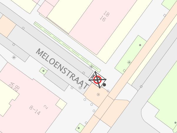 Meloenstraat (ter hoogte van zijgevel Anton Geesinkstraat huisnummer 16; wegvak tussen Okkernootstraat en Anton Geesinkstraat)