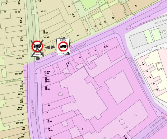 Twijn straat (ter hoogte van het pand Twijnstraat huisnummer 22 nabij de hoek met de Nicolaasstraat;