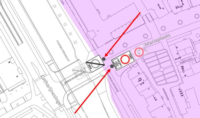 Mariaplaats (ter hoogte van het Willemsplantsoen (begin zone) en ter hoogte van de Rijnkade (einde zone); wegvak: tussen de Marga Klompébrug en de Mariaplaats nummer 27)