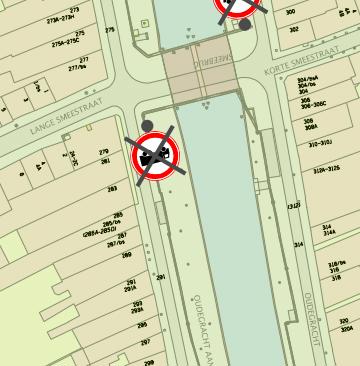 Oudegracht (ter hoogte van het pand Oudegracht huisnummer 279 nabij de Lange Smeestraat; wegvak: tussen de Lange Smeestraat en Geertestraat)