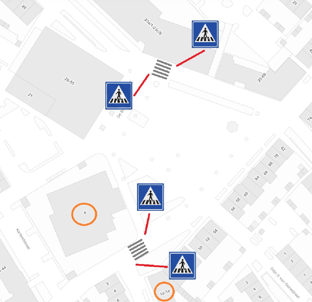 Op erftoegangswegen normaal gesproken geen voetgangersoversteekplaatsen gerealiseerd worden;