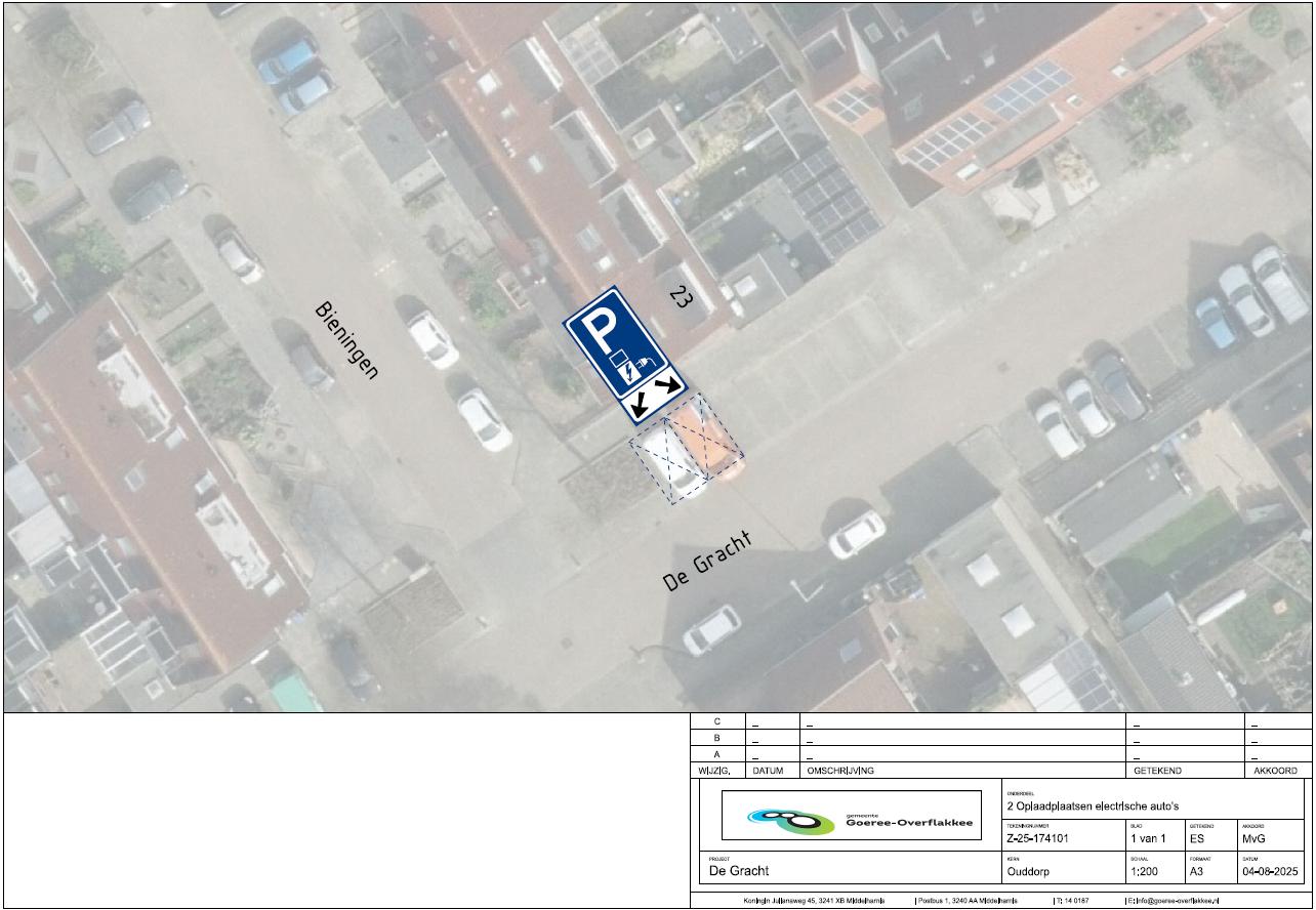 AANWIJZEN PARKEERPLAATSEN VOOR OPLADEN ELEKTRISCH VOERTUIGEN DE GRACHT TE OUDDORP