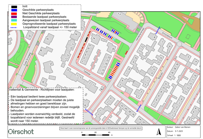 de betreffende laadpaallocatie is in eerste instantie bepaald op basis van een plaatsingsleidraad Vattenfall dat voorziet in (27) basiscriteria en vanuit de verschillende beheerdisciplines is de locatie nader bekeken en geschikt bevonden, zodat er een passende invulling gegeven wordt aan de Oirschotse in-