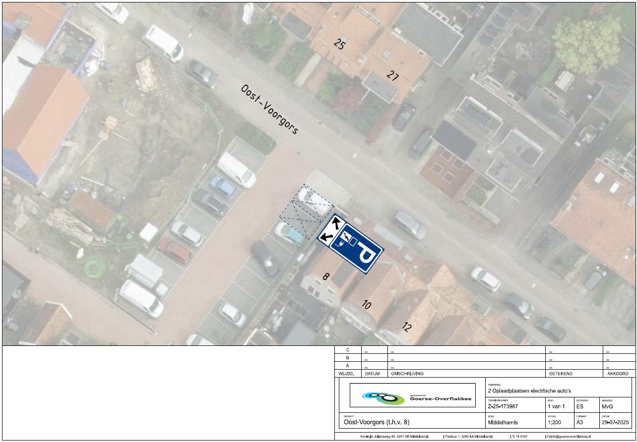 tot het aanwijzen van twee parkeerplaatsen bedoeld voor het uitsluitend opladen van elektrische voertuigen in de Oost-Voorgors, in de haakse parkeervakken naast de woning met huisnummer 8 te Middelharnis, door het plaatsen van verkeersbord E08c met onderbord OB504 conform model van bijlage I van het Reglement Verkeersregels en Verkeerstekens 1990;