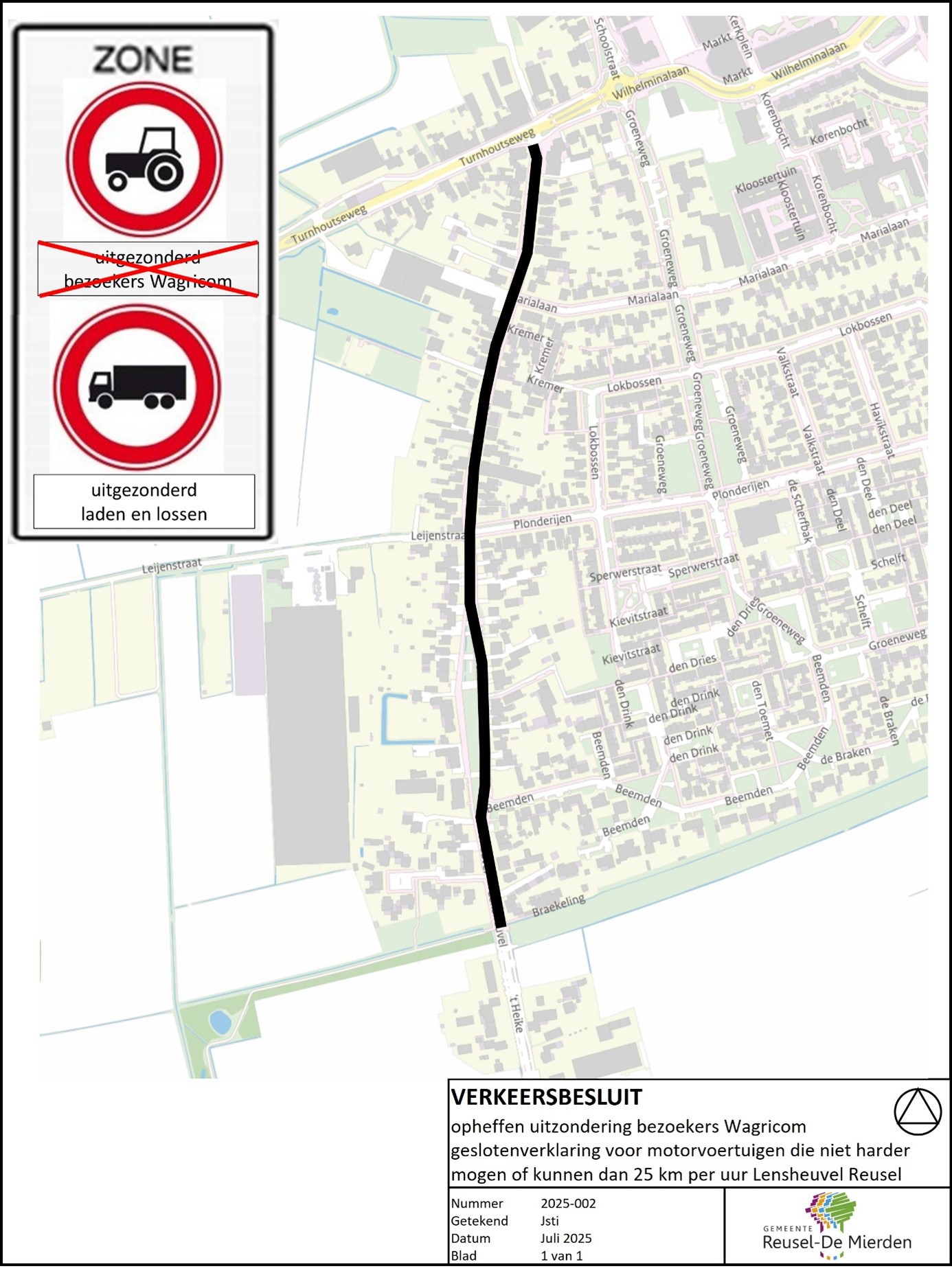 Door het verwijderen van de onderborden met tekstopschrift “uitgezonderd bezoekers Wagricom”, de uitzondering voor bezoekers van Wagricom op de geslotenverklaring voor motorvoertuigen die niet harder mogen of kunnen dan 25 km per uur op Lensheuvel op te heffen;