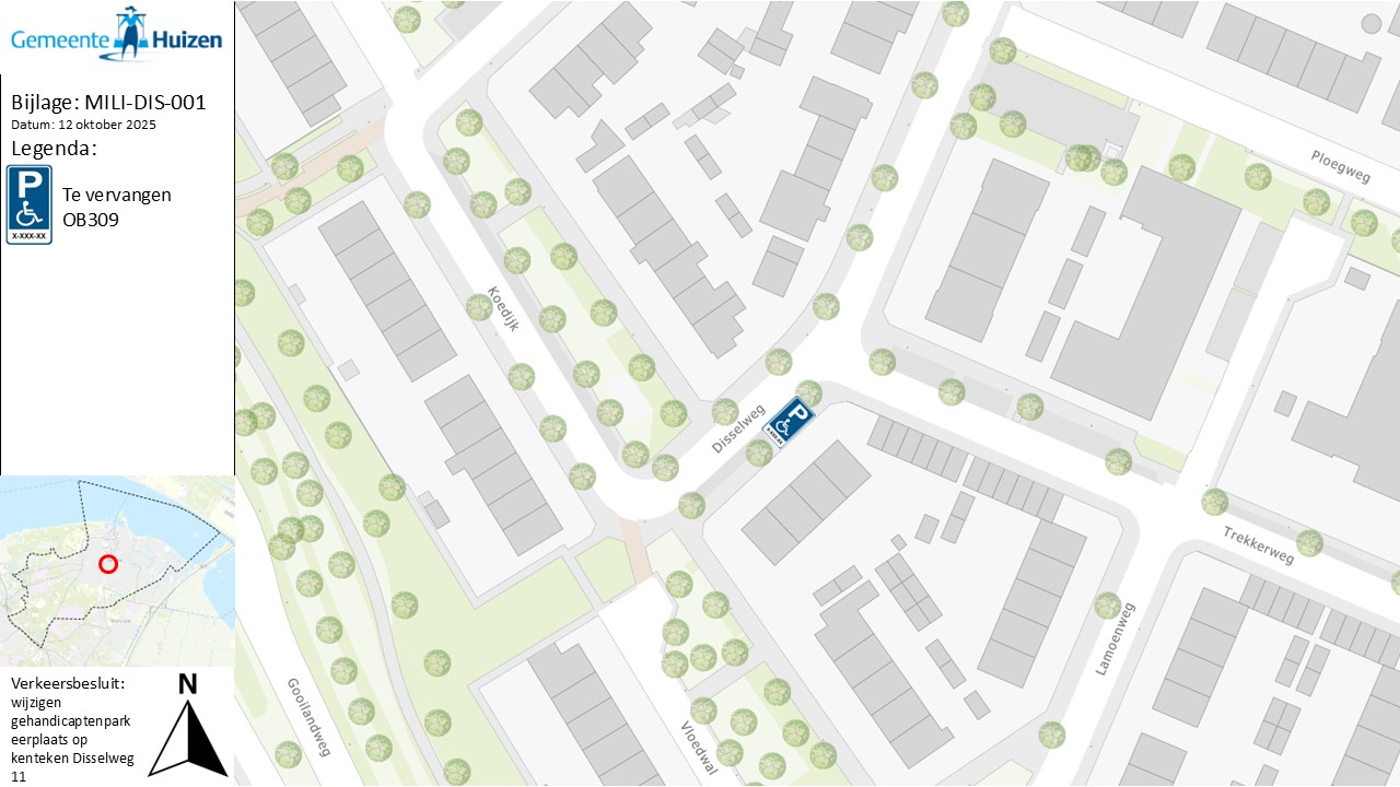 Verkeersbesluit wijzigen gehandicaptenparkeerplaats op kenteken Disselweg 11 te Huizen