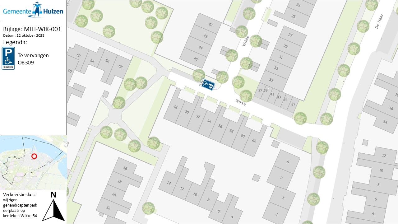 Verkeersbesluit wijzigen gehandicaptenparkeerplaats op kenteken Wikke 54 te Huizen