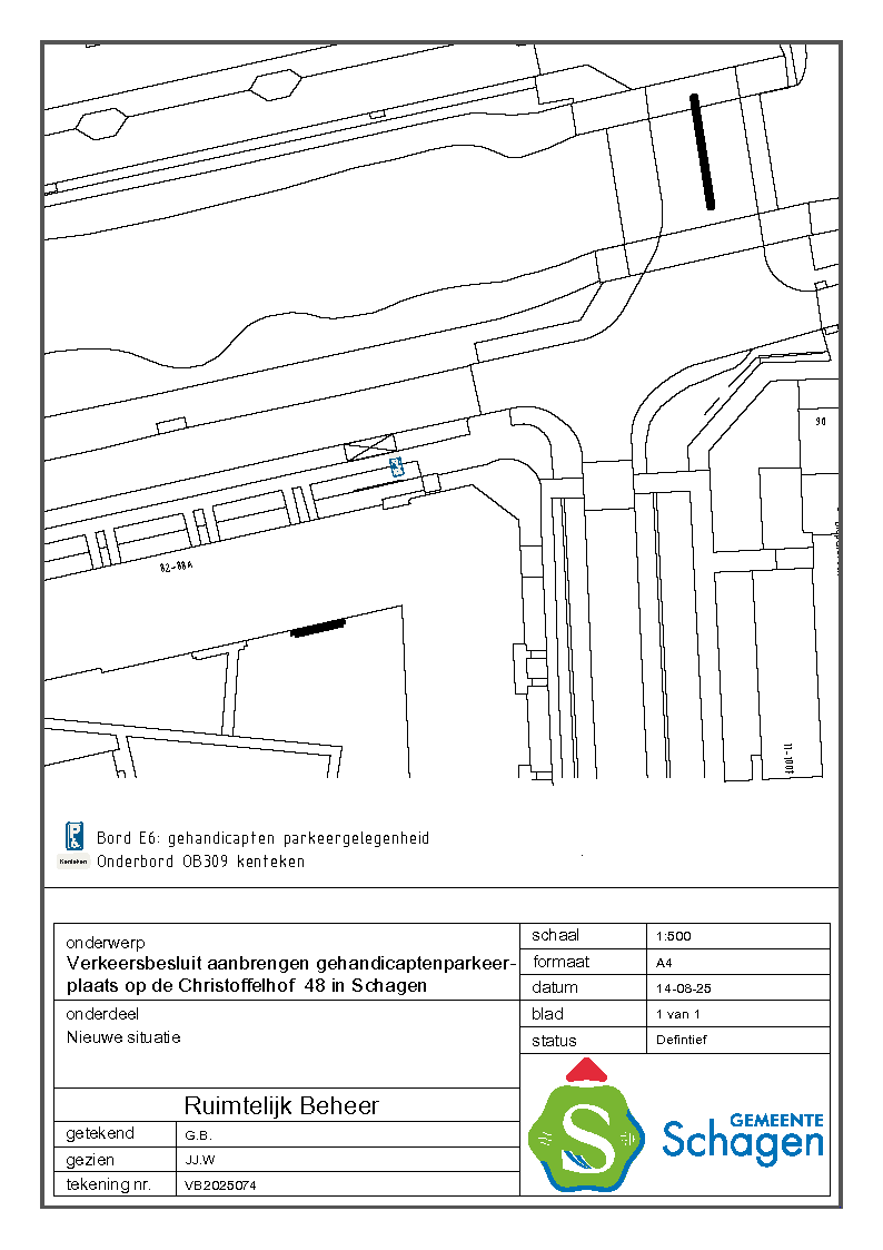 Gemeente Schagen- Verkeersbesluit gehandicaptenparkeerplaats op kenteken nabij Christoffelhof 48, Schagen.